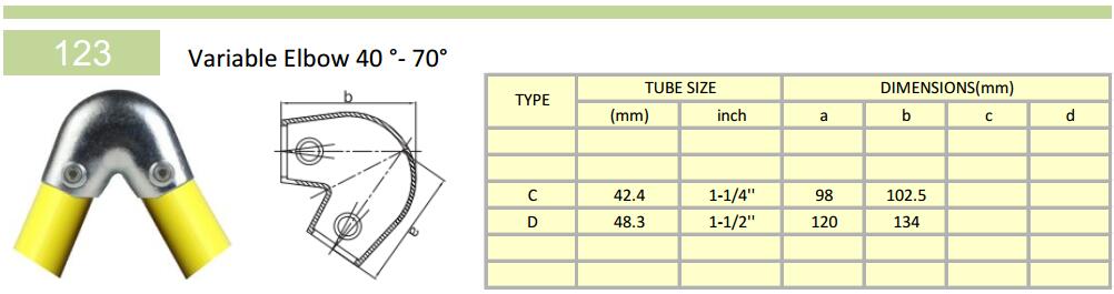 • Name: 123 Variable Elbow 40 °- 70°